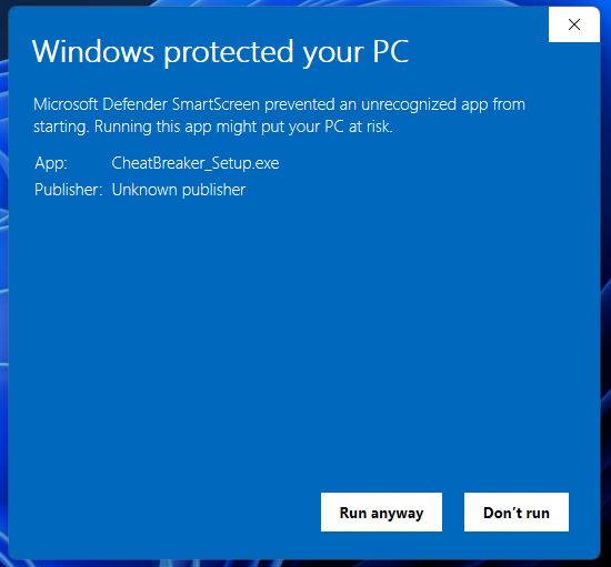 • You may get a warning from Windows Defender on the first time you open the launcher installer